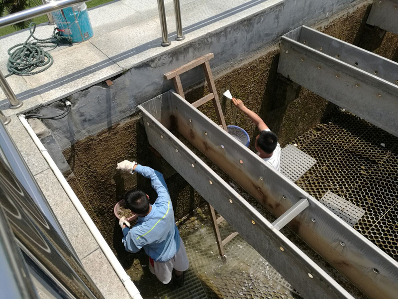 三水廠將絮凝沉淀池清洗列為本次保障工作重點,提前制定周密細致的清洗方案,合理安排清洗時間,有序地推進水位計校驗,刮泥機和其它水下設備維護和檢修,并對沉淀池、配水槽等進行刮泥清理和消毒。