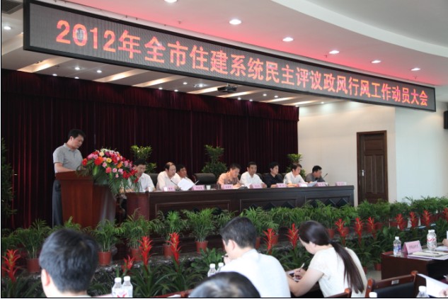 5月17日,市住建委召開全市住建系統(tǒng)民主評議政風行風工作動員大會,市住建委黨委書記、主任楊劍作動員報告,并出臺評議方案。圖為市供水總公司總經理陳衛(wèi)國作表態(tài)發(fā)言。