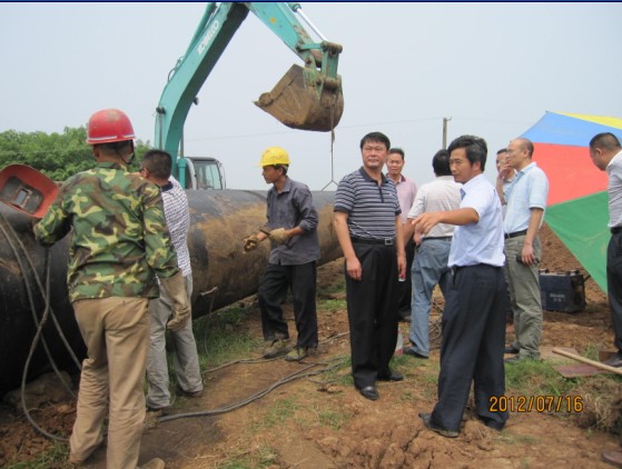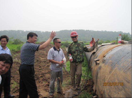 總經(jīng)理陳衛(wèi)國(左四)、黨委書記陳永根(右二)在城區(qū)安全飲水工程施工現(xiàn)場聽取施工負責人匯報,要求加快進程,確保質(zhì)量,按時完工,向全市人民交上一份合格答卷。