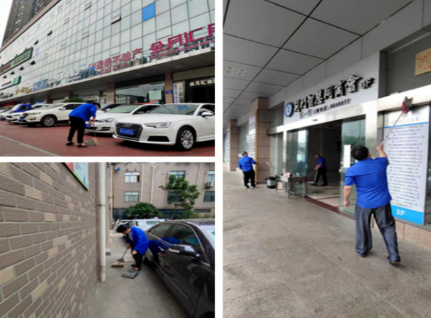 為把創(chuàng)城迎檢工作真正落實(shí)到實(shí)處,物業(yè)公司主動(dòng)作為,積極推進(jìn)。一是積極開展白色垃圾、煙頭等清理清掃工作,做到不留盲點(diǎn)、不留死角。二是重點(diǎn)整治車輛亂停亂放等突出問題,及時(shí)更換損壞老化的設(shè)施設(shè)備,加大排查安全隱患力度。三是集中修剪綠化,清理雜草枯草,確保小區(qū)環(huán)境干凈美化,及時(shí)修補(bǔ)破損路面、墻面。盡管頭頂烈日,汗如雨下,物業(yè)公司全體人員嚴(yán)格按照“八無十清理”創(chuàng)城標(biāo)準(zhǔn),堅(jiān)守一線,用汗水和熱情守護(hù)小區(qū)文明,助力創(chuàng)城達(dá)標(biāo)。