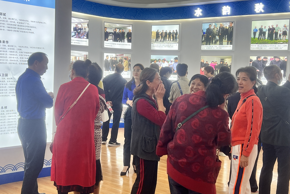 文化長(zhǎng)廊的“飲水思源”區(qū)域記載了集團(tuán)從1969年建司以來的大事記,“水韻秋實(shí)”區(qū)域張貼了許多工作場(chǎng)景的老照片,“水到渠成”區(qū)域懸掛著水務(wù)人親筆書寫的字畫,還有配件展示區(qū)的一件件實(shí)物,都讓老同志們駐足攀談,夢(mèng)回當(dāng)年。