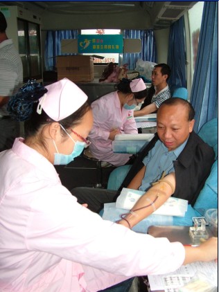 荊門市供水總公司熱心公益事業(yè),積極和荊門市中心血站聯(lián)系,組織發(fā)動職工志愿者義務獻血。圖為公司職工在流動獻血車上獻血。