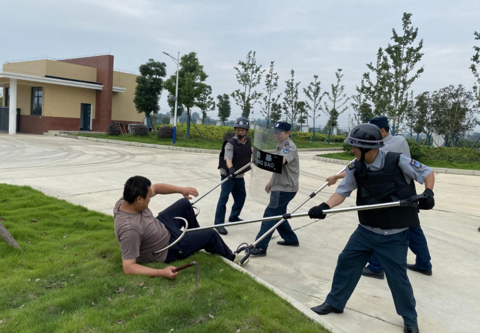 圖為安保隊(duì)長演示反恐器械的正確用法