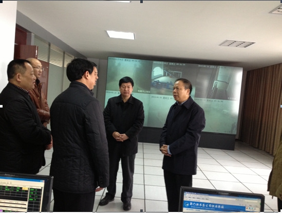 1月31日(正月初一)市委書記萬勇(右二),市委常委、秘書長周友坤(右三)慰問春節(jié)期間仍然堅守在工作崗位的供水員工,圖為在調(diào)度監(jiān)控中心時的情景。