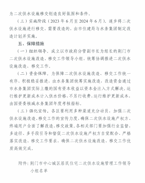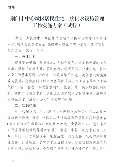 關于印發(fā)《荊廣市中心城區(qū)居民住宅二次 供水 設施管理工作實施方案(試行)》的通知