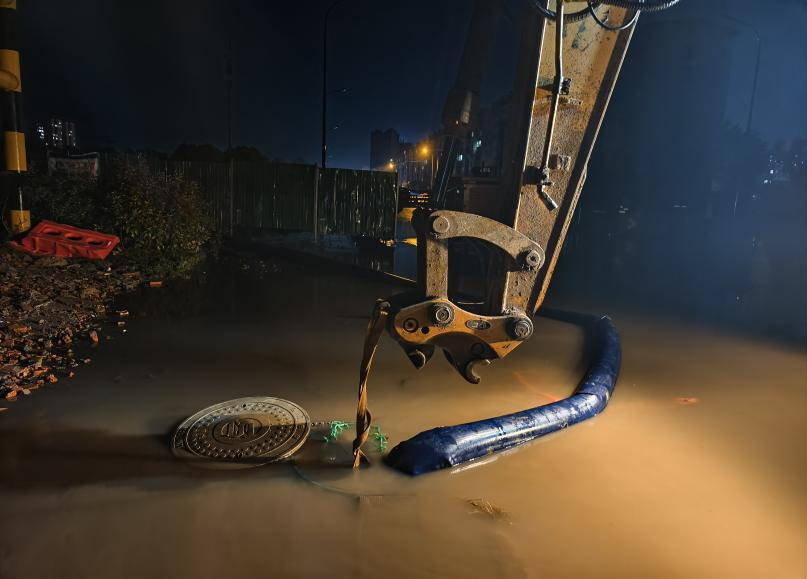 此次降雨持續(xù)時間較長,搶險人員重點對積水嚴(yán)重的路段進行緊急處置,包括開啟雨水箅、檢查井蓋以加快排水速度,放置防洪罩防止次生災(zāi)害,并對爆管點位進行專人值守,歷時12個小時圓滿完成防汛搶險任務(wù)。據(jù)統(tǒng)計,中心城區(qū)“三區(qū)”共發(fā)現(xiàn)16處積水及爆管嚴(yán)重點位,針對這些重點區(qū)域采取專項措施,如調(diào)用抽水設(shè)備進行抽排,確保積水迅速消退。降雨結(jié)束后,搶險人員對城區(qū)進行了全面排查,及時復(fù)位被雨水沖開的井蓋和雨水箅,徹底安全消除隱患。