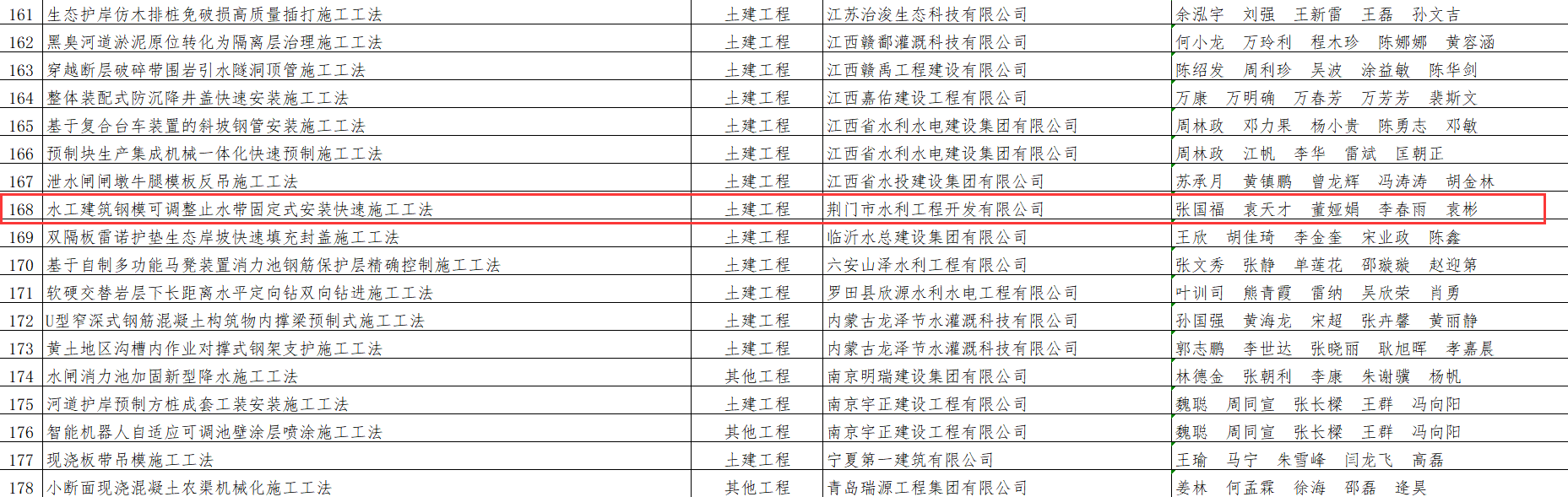喜報(bào)!荊門市水利工程開(kāi)發(fā)有限公司工法成果獲評(píng)2025年部級(jí)水利行業(yè)工法
