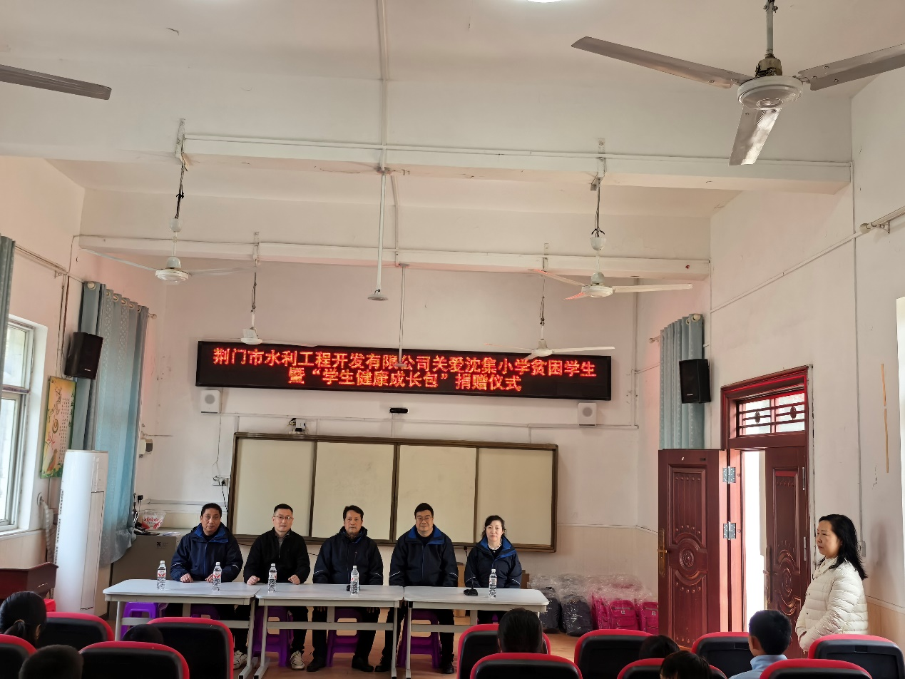 3月11日下午,荊門市水利工程開發(fā)有限公司(以下簡(jiǎn)稱“荊門水發(fā)公司”)走進(jìn)沙洋縣沈集鎮(zhèn)中心小學(xué),開展市關(guān)工委組織的“關(guān)愛青少年健康成長(zhǎng)包”專項(xiàng)捐贈(zèng)活動(dòng)。