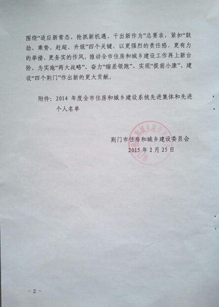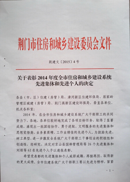 公司獲2014年度全市住房和城鄉(xiāng)建設(shè)系統(tǒng)先進集體