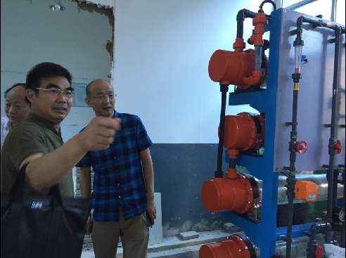 一水廠為城市備用水廠,始建于1969年,以前凈化工藝采取傳統(tǒng)的加氯(氯氣瓶儲存供應(yīng))方式,考慮到一水廠地處省重點中學(xué)龍泉中學(xué)旁,人口密集,存在?;沸孤┌踩[患,公司通過考察,慎重決策,在內(nèi)地(目前僅在沿海地區(qū)發(fā)達(dá)城市應(yīng)用)首家引進(jìn)次氯酸鈉加氯(電解反應(yīng),邊制造邊供應(yīng))方式,投資50萬進(jìn)行工藝改造,徹底解除這一公共安全隱患。在改造現(xiàn)場,公司黨委書記、總經(jīng)理陳永根要求,一水廠次氯酸鈉加氯改造項目要加快建設(shè),確保6月底前投運(yùn),同時要做好職工培訓(xùn)工作,確保人人能按新工藝規(guī)程進(jìn)行熟練操作,確保公共安全。