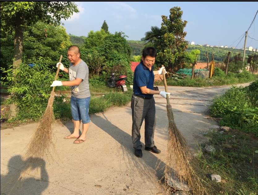 8月13日,烈日炎炎,公司黨委副書記、紀(jì)委書記、工會主席徐黎明帶領(lǐng)辦公室、物業(yè)公司相關(guān)人員,利用周休時間,支持社區(qū)創(chuàng)衛(wèi)工作,對社區(qū)毛湖沖居民點道路進行衛(wèi)生清掃,對陳年垃圾丟棄點進行集中清理。圖為清掃現(xiàn)場。