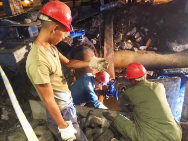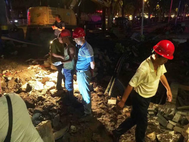 三眼橋供水管道并網碰頭風雨無阻連夜進行