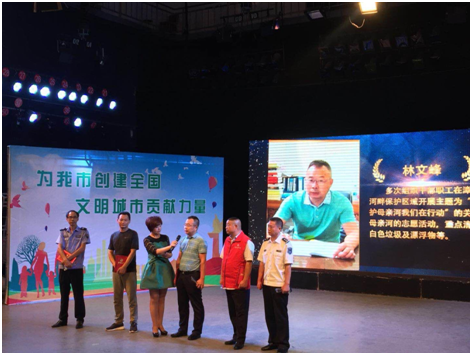 漳河是荊門人民的母親河。從事供水事業(yè)近30年以來,無論酷暑嚴(yán)寒、刮風(fēng)下雨,林文峰堅(jiān)持每天巡查水源保護(hù)區(qū),帶領(lǐng)水廠員工清理取水口周邊雜物,確保水源干凈整潔和供水安全優(yōu)質(zhì)。頒獎典禮上,林文峰現(xiàn)場講述了近二十年持之以恒的水源地環(huán)保行動,樸實(shí)無華卻震撼心靈,為廣大市民樹立了環(huán)保典范。