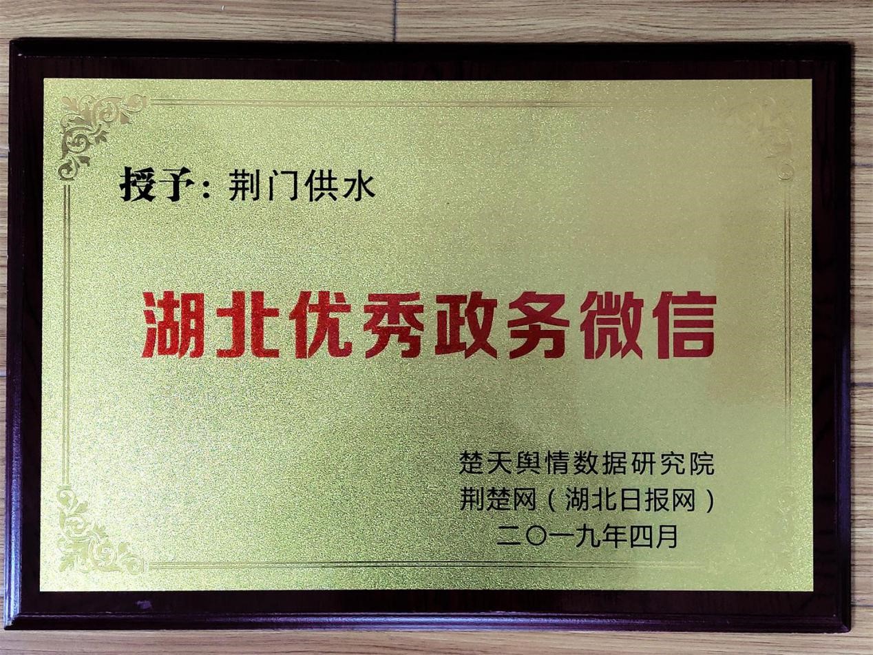 4月26日上午,由省委網(wǎng)信辦指導、湖北日報傳媒集團主辦的2019湖北第二屆政能量峰會在武漢舉行。會上,“荊門供水”微信公眾號被楚天輿情數(shù)據(jù)研究院、荊楚網(wǎng)(湖北日報網(wǎng))表彰為“全省優(yōu)秀政務微信公眾號”。